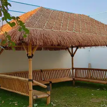 توفر تغطية أنيقة لمناطق الجلوس بجانب المسبح، مع إمكانية مقاومة الرطوبة عند استخدام الخيزران الصناعي أو المعالج.